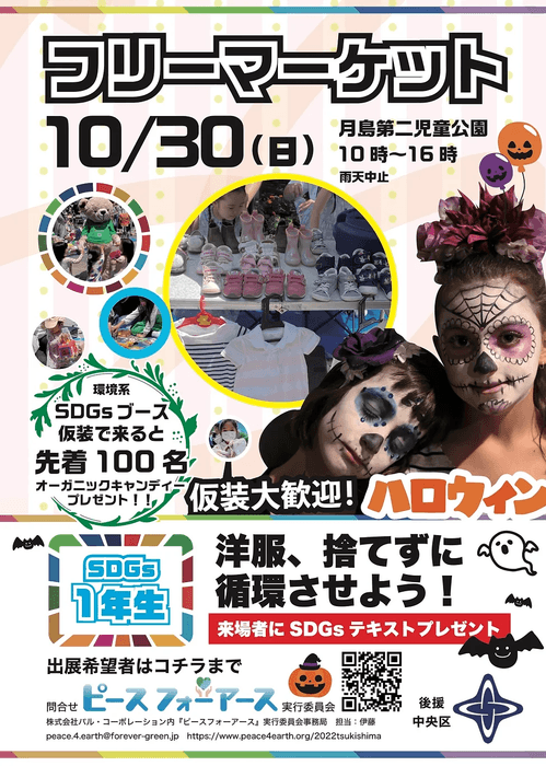 SDGsをテーマにしたフリマ、ハロウィンイベント!10/30㈰ @東京都中央区勝どき/月島 「フリーマーケット×SDGs」体験型イベントにて無理しないSDGsの取り組みを紹介。