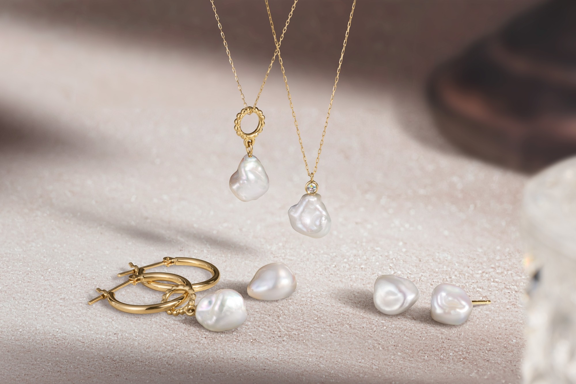 <ケイウノ>冬の新作 肌になじむ“ダイヤモンドネックレス”& 自然美をまとう“バロックパールジュエリー”3種類