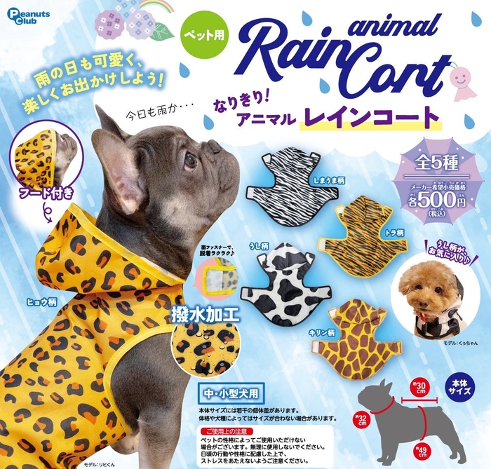 雨の日のお散歩が楽しくなるアニマル柄のレインコート。