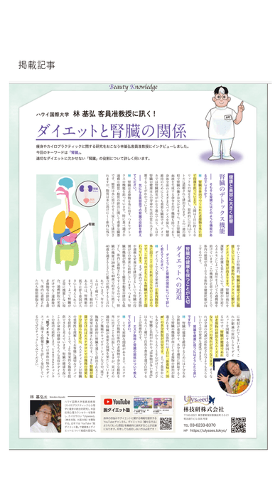 またインタビューの中でも触れていますが、当社代表 林 基弘ハワイ国際大学客員准教授は、YouTube「賢い大人の健康美容 脱ダイエット塾」でもダイエットやカラダの悩みに関する情報を発信しており、登録者は2万人超。同氏運営のサロンへの導入機会にもなっています。