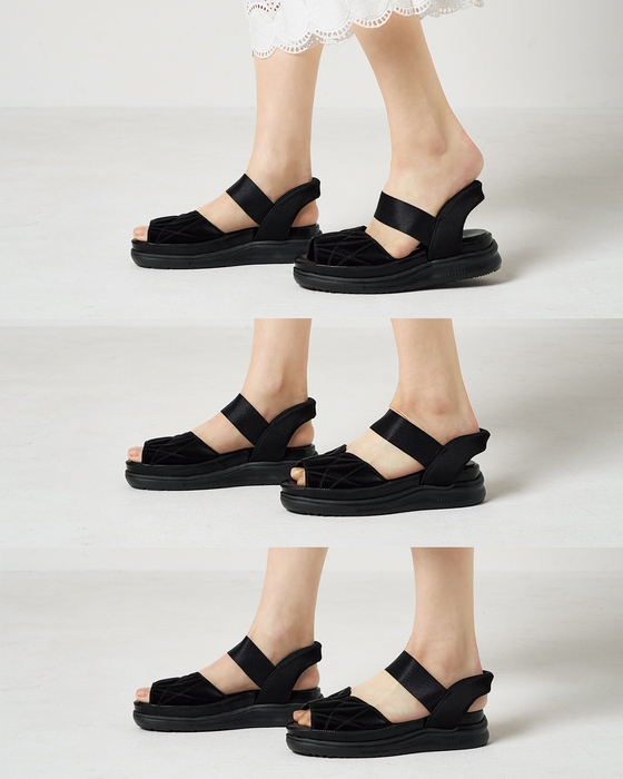 「ストッキングにベルクロが引っかかる」「S字フックが面倒」など、サンダル特有の脱ぎ履きのストレスを解消。かかと部分にオリジナルのハンズフリーパーツを採用し、手を使わずにスッと履ける設計に。しっかりホールドしながらも痛くなりにくい構造で、サッと履けてしっかり歩ける一足です。