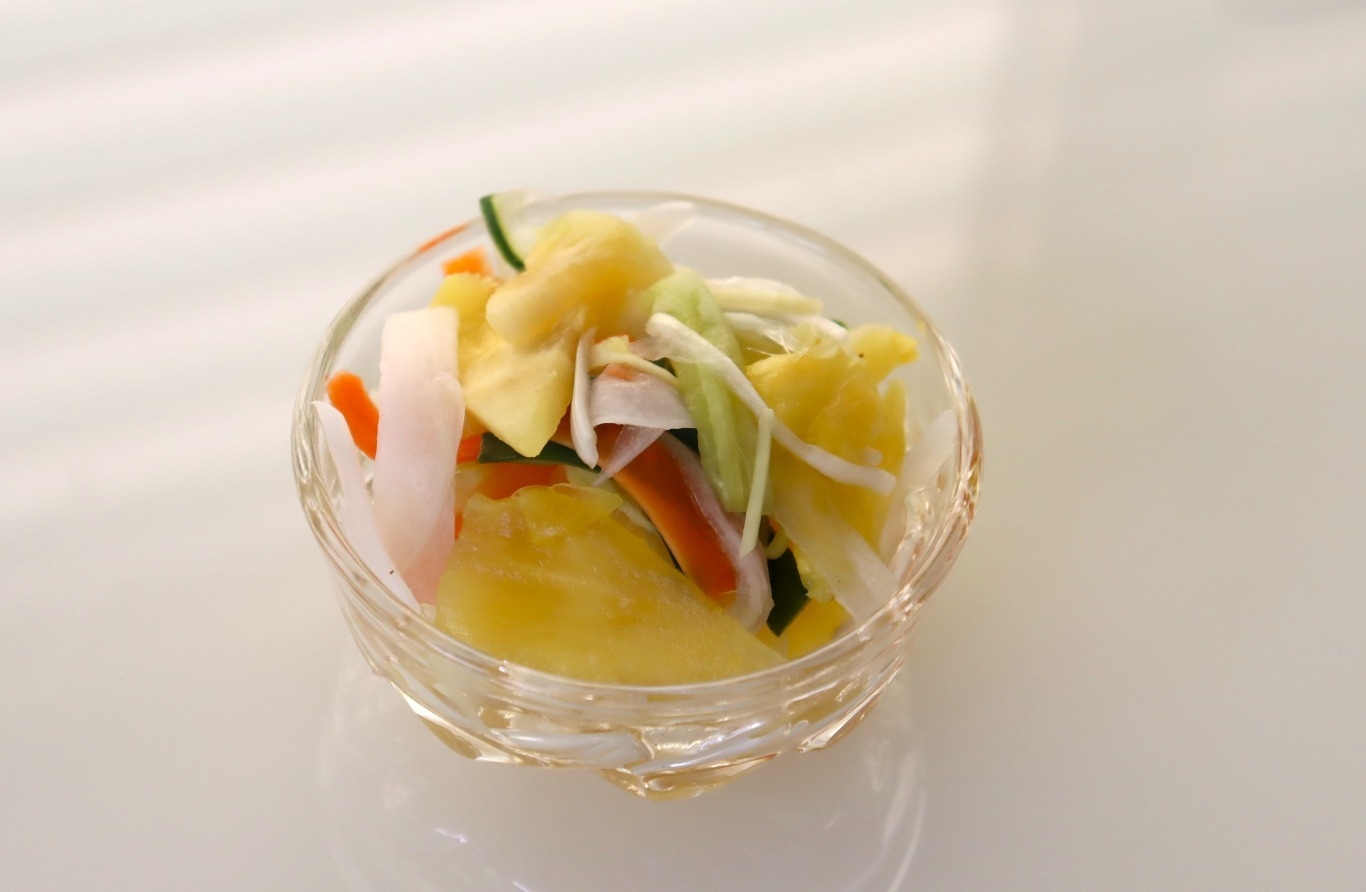 浜内氏が今回のイベントのために考案したのは、台湾パイナップルを使用した「ちらし寿司」「白和え」「浅漬け」「塩和え」の計4品。台湾パイナップルの甘さを活かした、砂糖いらずのレシピが紹介されました。全てのレシピに生のパイナップルを使用しており、消化を助ける酵素やビタミンC、食物繊維など美容や健康にも嬉しいメニューとなっていました。さらに、シェントウジャン(豆乳スープ)やタロイモのカナッペなど、台湾の食材を取り入れたメニューも登場。参加者からは、「台湾パイナップルの魅力を学ぶことができた」「調理も簡単で美味しい!」といった声が聞かれました。フルーツとしての美味しさだけでなく、料理の食材としても活躍する台湾パイナップル。その魅力と可能性を存分に伝えるイベントとなりました。