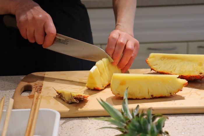 台湾農業部は、台湾産パイナップルの日本市場での本格販売開始に合わせ、台湾パイナップルの認知度向上、消費拡大に向けたプロモーションの一環として、2025年3月26日(水)料理研究家 浜内千波氏のファミリークッキングスクール・ラボにて「台湾パイナップル プレミアムテイスティング会」を実施しました。イベントでは、浜内氏が考案した台湾パイナップルの美味しさが味わえるレシピの紹介を中心に、台湾の食材、料理なども紹介されました。一般の参加者に料理を味わっていただくことで、台湾パイナップルへの親しみをもってもらうとともに、おいしさの魅力について知ってもらうきっかけとなるイベントとなりました。