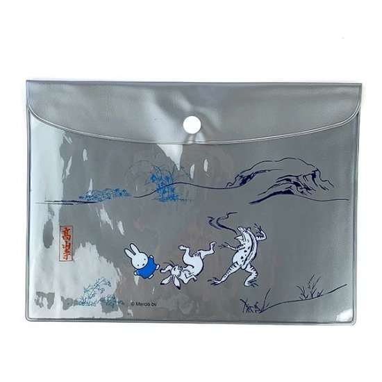 A5サイズのフラットポーチに、ミッフィー×鳥獣戯画のデザインが登場です。