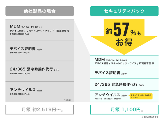 24時間365日の端末ロック・ワイプ(初期化)を代行する操作代行も、追加料金なしでご利用いただけます。また、キッティング(MDM初期設定)代行プランもご用意しておりますので、IT人材のリソース不足の課題にも寄り添ってまいります。