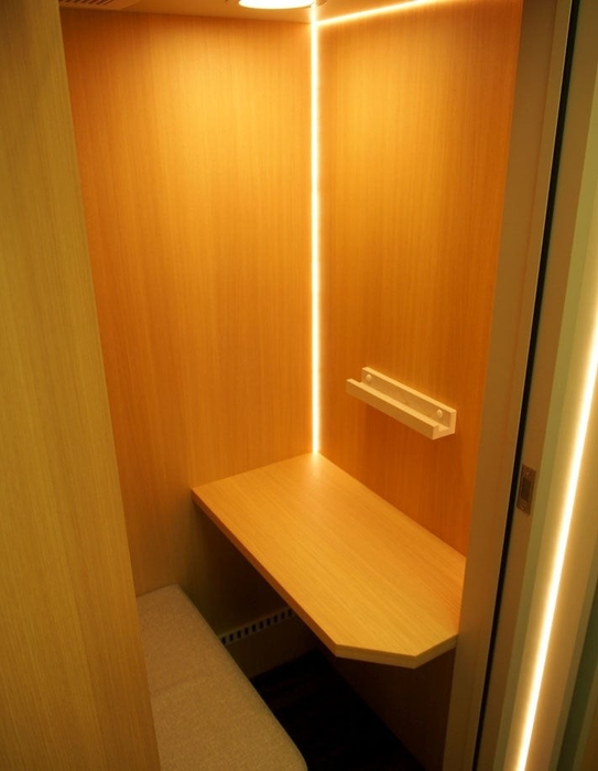 CHATBOXの室内は、前面パネル周囲のLEDライン照明と天井部のダウンライトにより、明るく快適な作業を可能としています。
