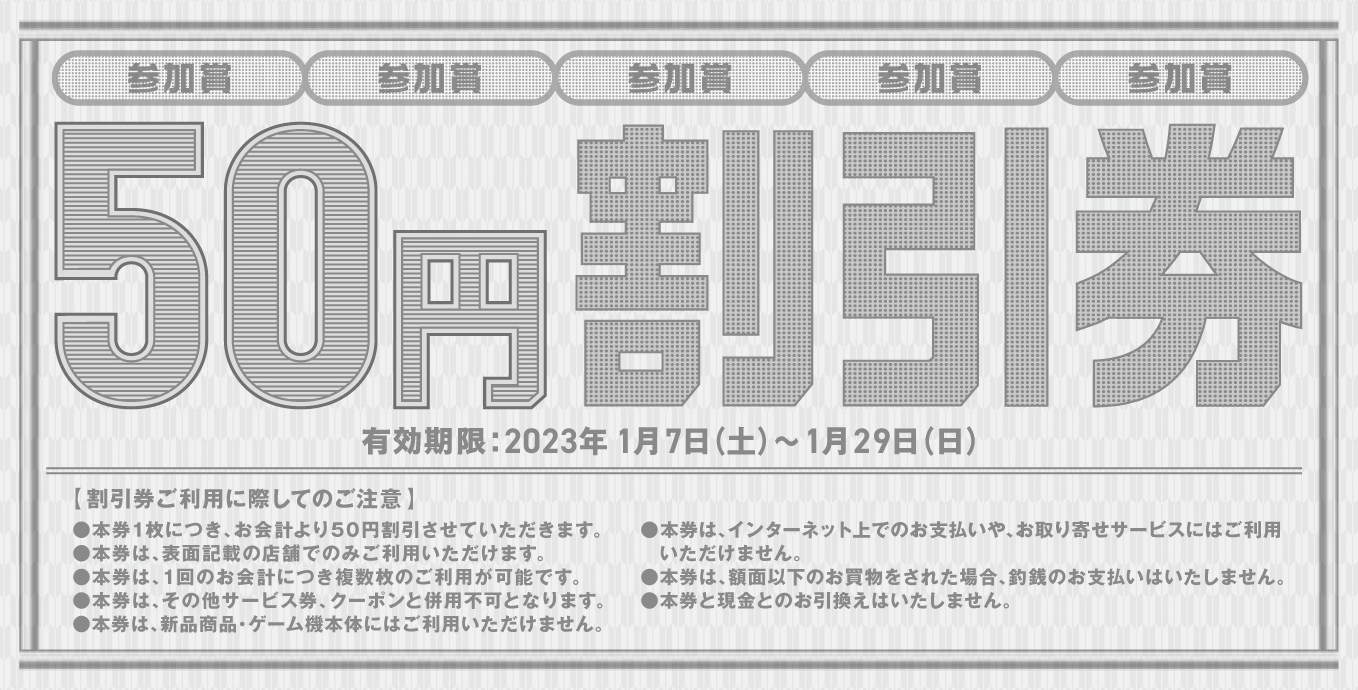 ・景品引換期間を過ぎた場合、当選および「くじ」特典(参加賞)の50円割引は無効となります。