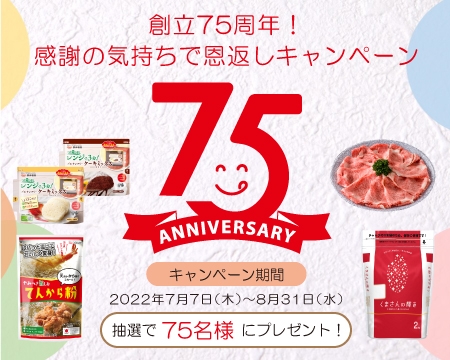 みなさまに支えていただき、熊本製粉は今年、創立75周年を迎えることができました。日ごろの感謝の気持ちを込めて「感謝の気持ちで恩返しキャンペーン」を開催中です!熊本県のブランド牛や、お米をプレゼント!詳しくはキャンペーンページから詳細をご確認ください。