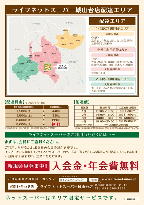 ご注文いただいた商品を店舗からご自宅へお届け「ライフネットスーパー城山台店」サービス開始【堺市内の配達エリアを拡大、和泉市の一部地域でもご利用可能に!】
