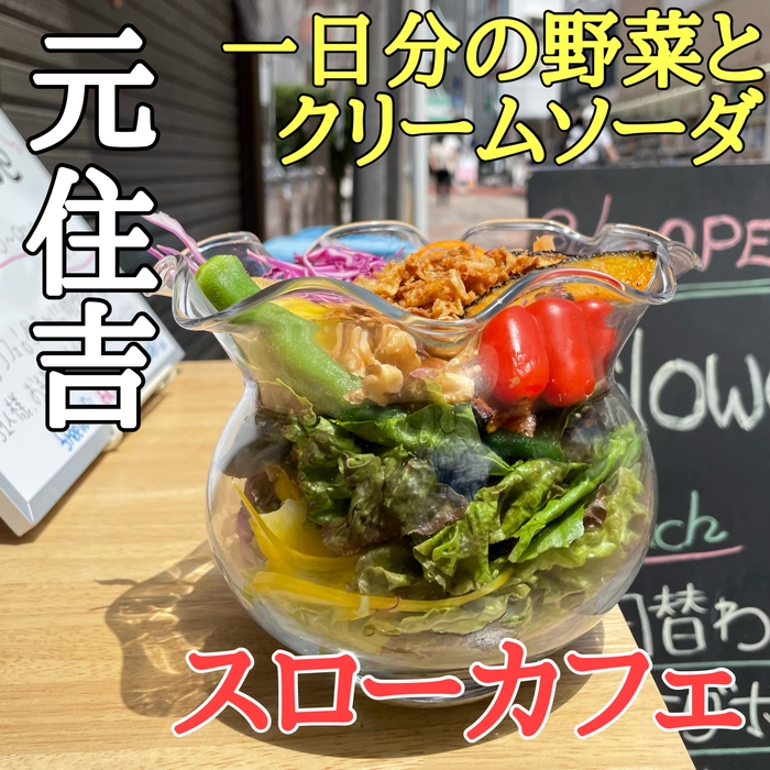 元住吉にオープンしたのは、金魚鉢サラダボウルと金魚鉢クリームソーダの店「スローカフェ」。