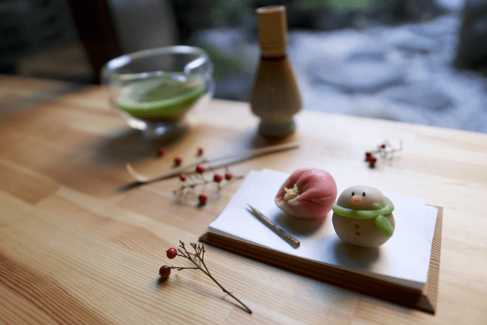 宿ルKYOTO HANAREでは、ウェルカムドリンクとして、お抹茶をご提供させて頂いております。お抹茶を振舞う上で欠かせないのは和菓子です。そこで京都の和菓子クリエイターにご協力いただき、季節に応じた和菓子を毎月ご提供致します。