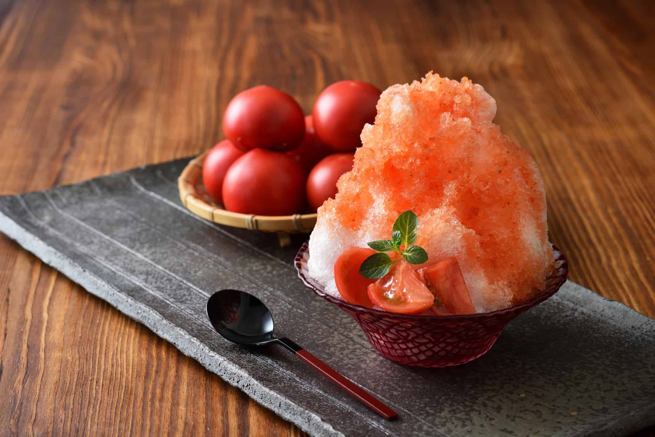 夏に旬を迎えるトマトを使ったかき氷。トマトは栄養成分が豊富な健康野菜で、ビタミンCやビタミンEなどをバランス良く含んでいます(*10)。甘酸っぱい味と鮮やかな赤色が印象的なかき氷です。