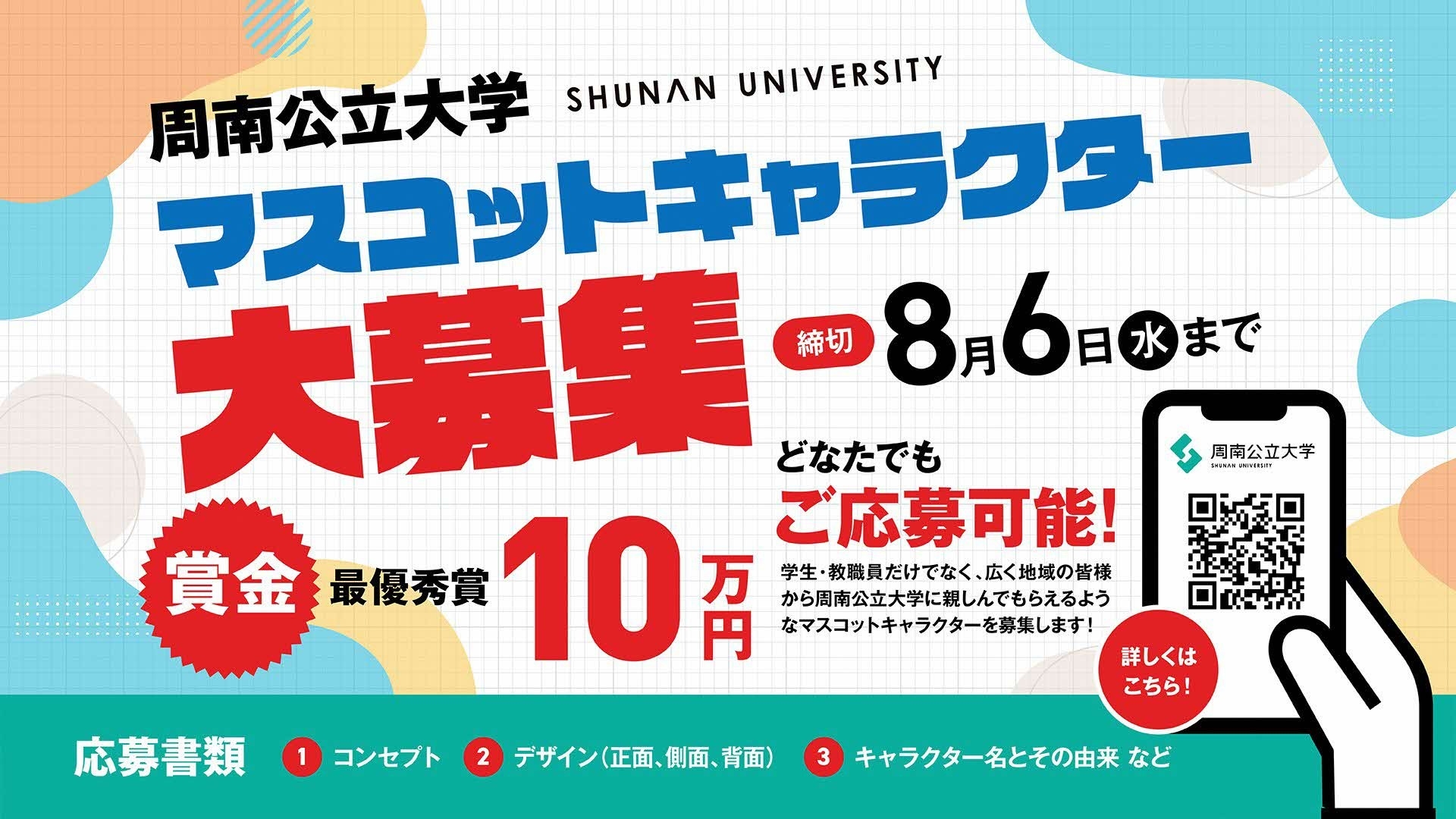 【最優秀賞10万円】周南公立大学の顔となるマスコットキャラクター大募集