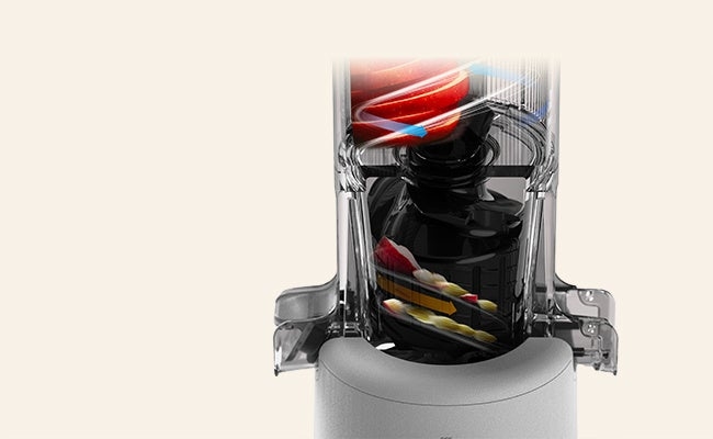 食材をホッパーに詰め込むだけで、カットから圧搾・搾汁までのプロセスがすべて自動になりました。ホッパー内部の回転刃が食材を細かくカットし、そのままドラム部分へ押し出しマルチスクリューを通して搾汁します。
