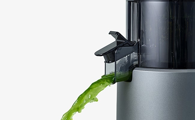 人間の手で搾るように食材にかかるストレスや熱を最小限に抑え、ゆっくり、しっかり搾汁するスクイーザー方式を採用。水溶性食物繊維を豊富に含んだジュースは、水や氷を使わず、食材の水分のみで作られるので、濃厚な味わいとサラリとした食感が特徴です。