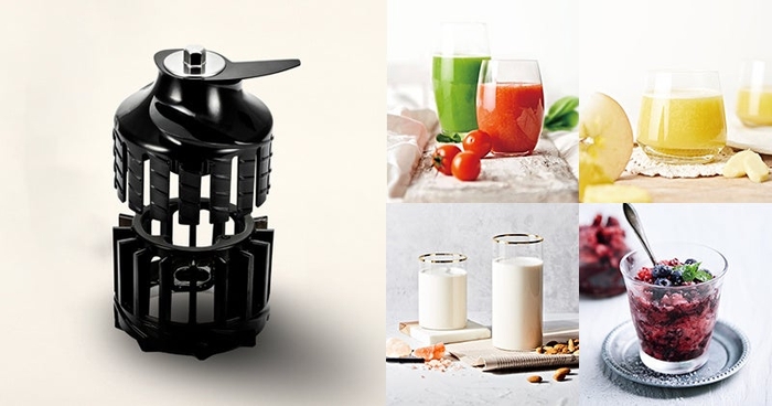 ジュースやスムージー、フローズンまで様々な搾汁がこのスクリューひとつで出来るオールインワン仕様。