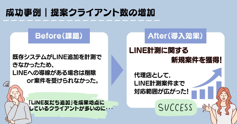 代理店として、LINE友だち登録の計測が必要なプロモーションの提案ができるようになった。