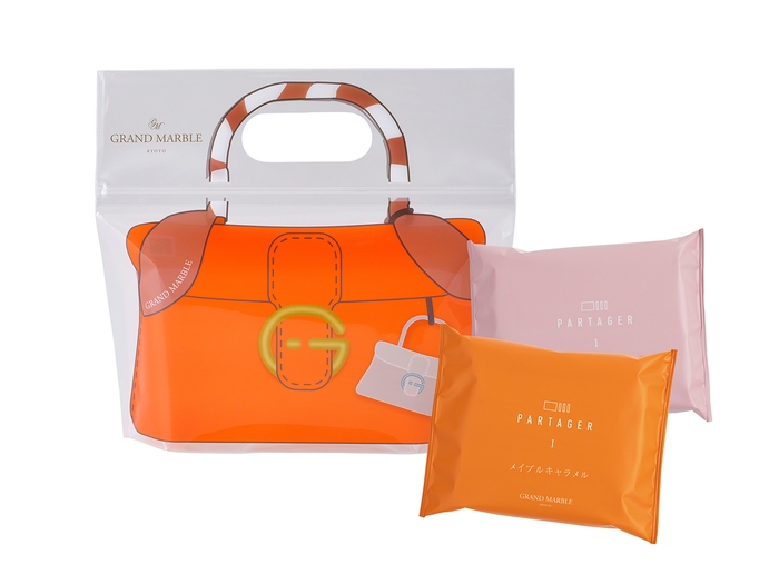 このたび新たに登場する「PARTAGER(パルタージェ)ポーチ」は、オレンジ色のかわいらしいバッグデザインのポーチ型パッケージに、個包装のマーブルデニッシュを1枚または2枚入れた、ギフトにもおすすめの新形態です。