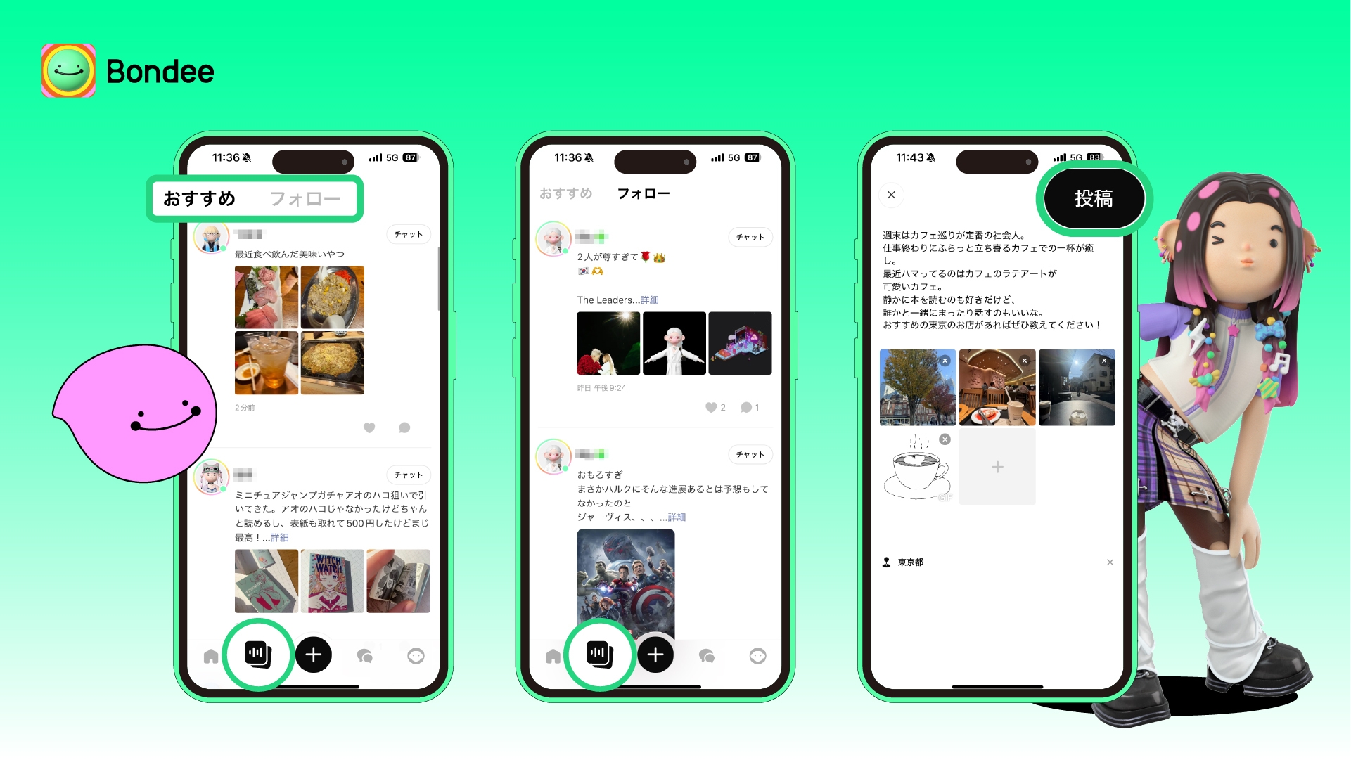 Bondeeは流行に流されず、ユーザーが今を楽しみ、本当に大切なものを見つめられるよう、私たちはリアルを生きる人々が「自分らしくいられる場所」を創り続けます。