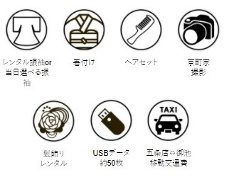 ■プラン内容:振袖レンタル・着付け・ヘアセット・髪飾りレンタル・USBデータ約50枚・五条店⇔御池別邸移動交通費が含まれています。