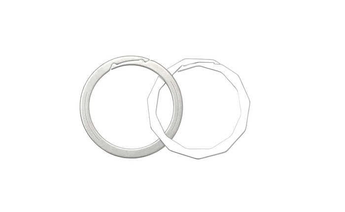 1枚のステンレスを、精密なレーザーカットで美しく加工。シンプルで洗練されたフラットな表面には、繊細なラインが映え、日常を上質にする特別なキーリングが生み出されます。
