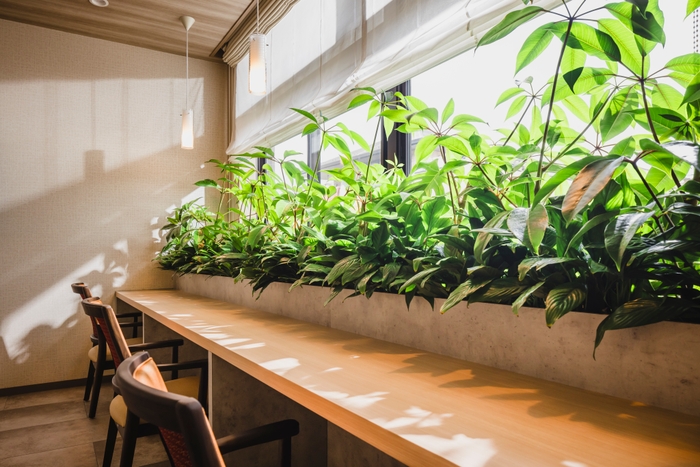 パソナ日本総務部では、人間は自然と触れ合うと本能的にやすらげるという「バイオフィリア理論」を取り入れ、空間づくりを行うバイオフィリックデザインソリューション『コモレビズ』を提供しています。