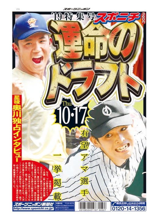 株式会社スポーツニッポン新聞社(本社:東京都江東区、代表取締役社長:河野俊史、以下スポニチ)は「2020年ドラフト特集号」を10月13日から発売いたします。(関西は9日、福岡は10日から先行発売)