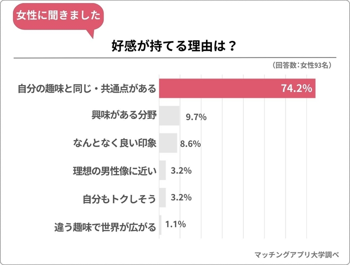 女性もやっぱり、「自分の趣味と同じ・共通点がある」が好感が持てる理由