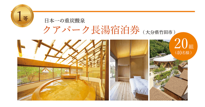 日本有数の天然重炭酸泉で話題の大分県竹田市にあります長湯温泉『クアパーク長湯』の宿泊券や当社商品など重炭酸を体感できるグッズが当たるチャンスです。