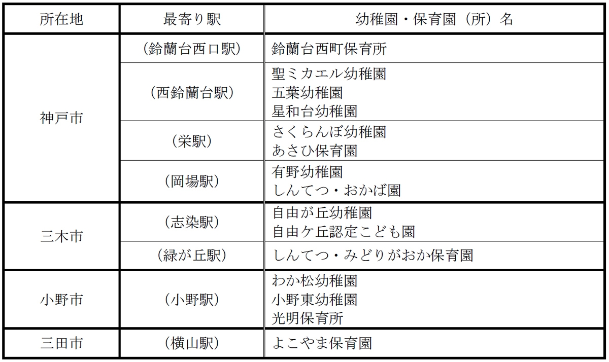 車内ポスターの作成にご協力いただく予定の幼稚園・保育園(所) 計15園(所)