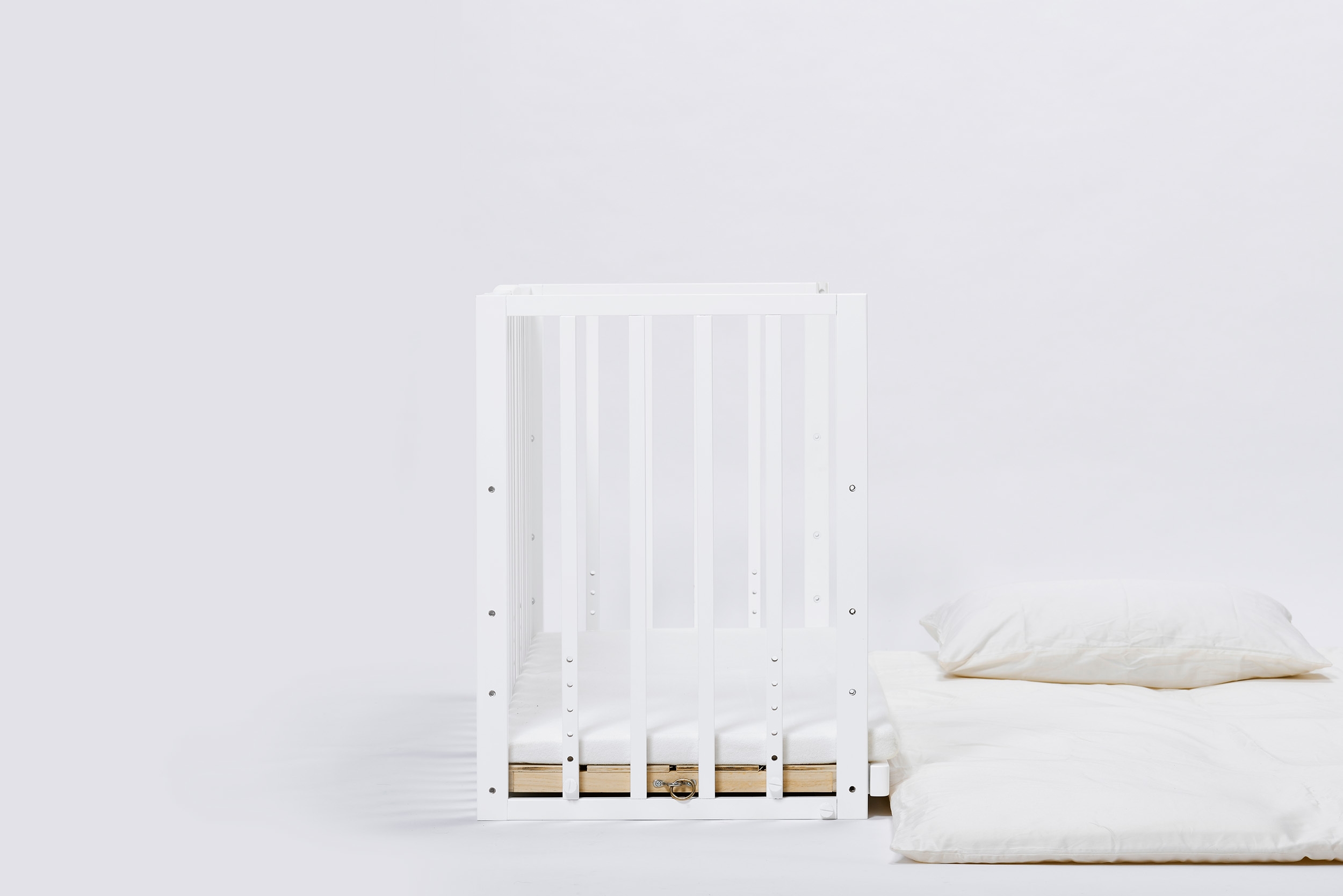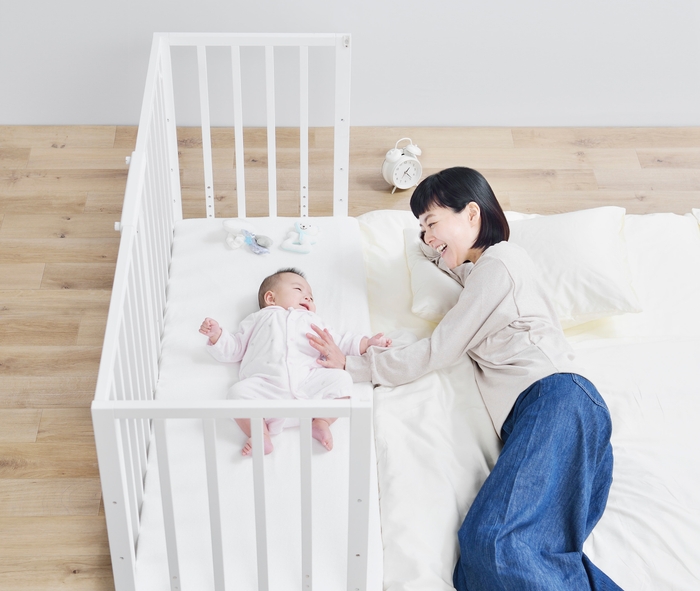 添い寝がもたらす親子のコミュニケーションを重視し、生活や子育ての多様化に応え、ベッドや布団などご家庭の就寝スタイルに合わせて添い寝することができるベビーベッドを作り上げました。子どもの安全を確保し、最短距離にいられることで安心感が得られます。