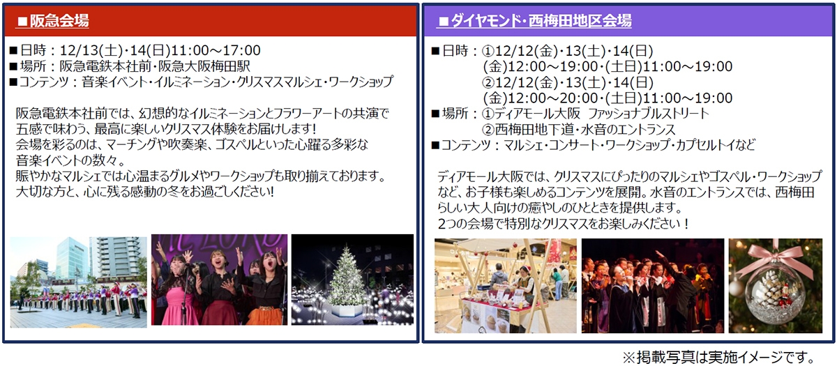 メインコンテンツとなる「HEART FES」は公共空間を中心に梅田の5つのエリアで12月13日(土)~12月14日(日)の2日間で開催します。クリスマスコンサートやワークショップ、マーチングパフォーマンスなど、まち歩きをより楽しんでいただけるコンテンツを多数ご用意しました。