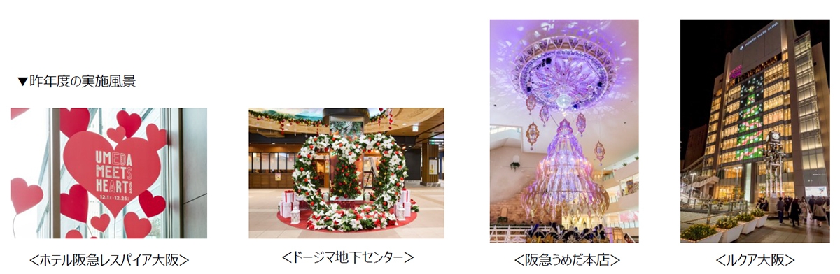 そのほかにも「HEART SPOT」では梅田の47施設が一体となって「ハート」「イルミネーション」の装飾でまち全体を彩ります。