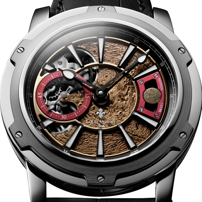 1965年に探査機マリナー4号が撮影した、人類初の火星表面の近接画像をベースにデザイン。文字盤上の銅メッキにパティーナ加工を施し、火星表面の凹凸・陰影を再現しています。