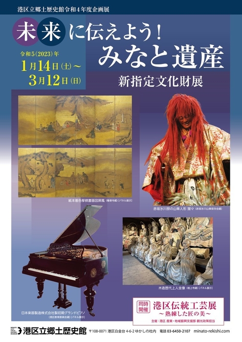 港区立郷土歴史館は、令和5(2023)年1月14日(土)~3月12日(日)に「未来に伝えよう!みなと遺産 新指定文化財展」を開催いたします。