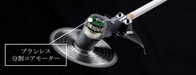 プロ向け電動工具に採用している京セラ独自設計の高出力「ブラシレス分割コアモーター」によって、密集した雑草や硬い草を刈る時も刃の回転スピードの落ち込みが少なく、スムーズな草刈りが可能です。