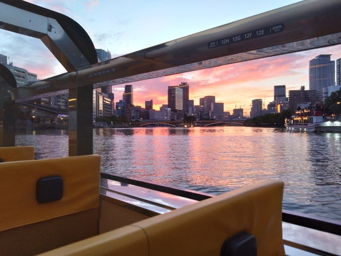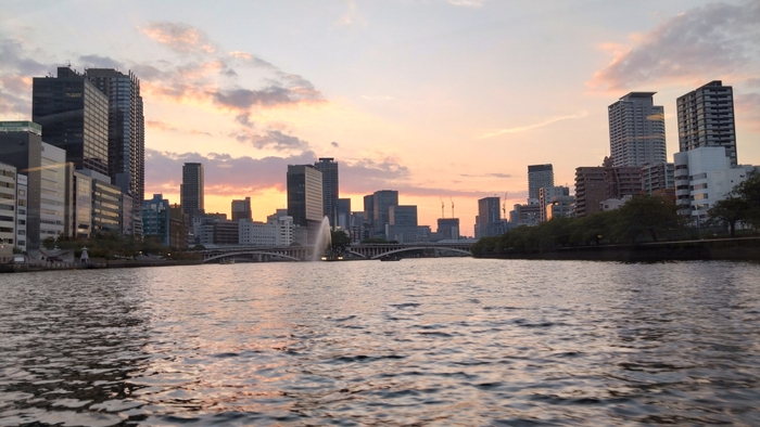 このクルーズでは、八軒家浜船着場を発着地とし、中之島や大阪都心のビル群に沈む夕日やマジックアワー(日没後の数十分間に体験できる薄明りの時間帯)の景色を、約25分間お楽しみいただくことができます。