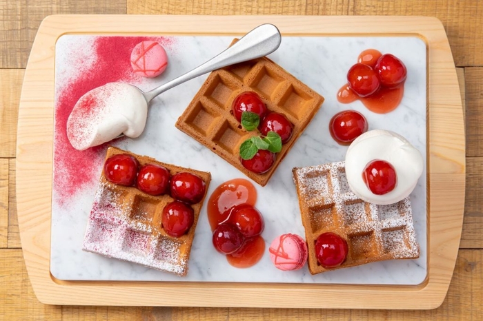 朝食ビュッフェで提供。「完熟さくらんぼワッフル」
