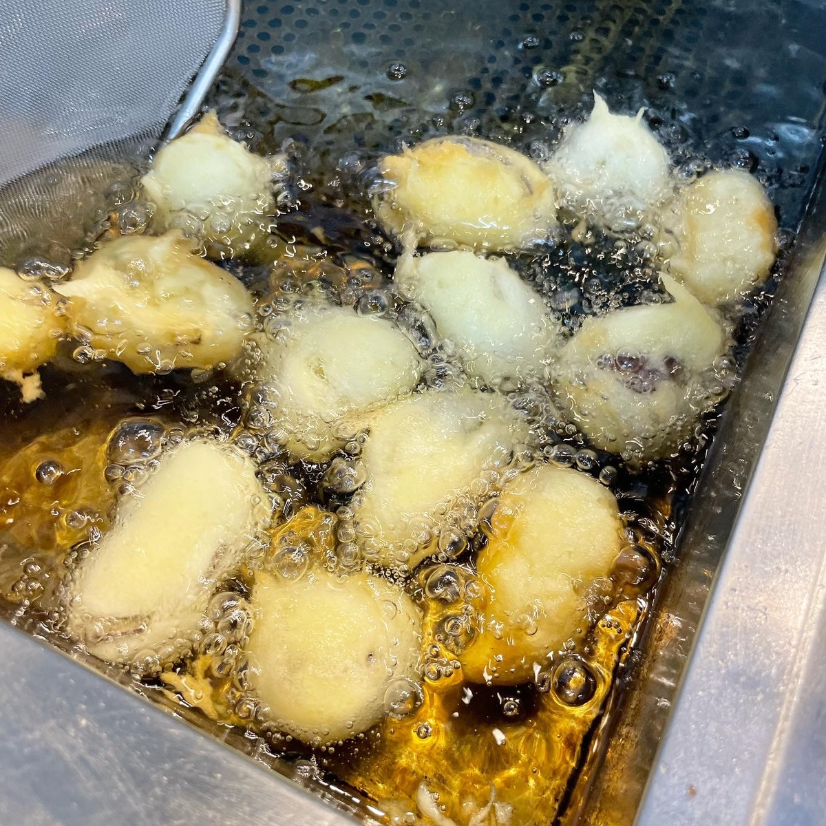 2月10日に奈良県香芝市磯壁に、「蜜いも天ぷらの専門 いも武」がオープンしました。茨城県産の紅はるかをほくほくに蒸して、喜界島産の粗糖を使用した自家製の蜜にじっくり漬け込んで下ごしらえをし、特製の衣でカラッと揚げたものです。一口サイズで食べやすい大きさ。さつまいも本来の甘さに加え自家製の蜜の優しい甘さが口に広がり、あつあつでサクッとした厚めの衣の食感と塩味とのバランスが絶妙です。