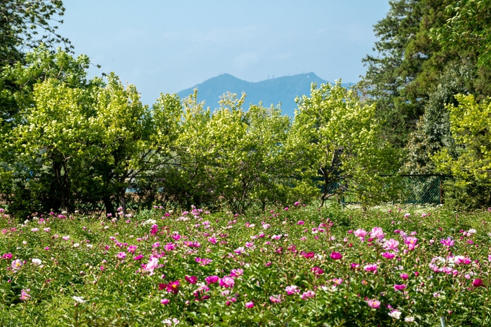 農薬不使用・酵素農法にこだわった土職人が「百花の王」ともいわれる牡丹・シャクヤクを800種類6万株を植栽した約2万坪の世界最大級の牡丹・シャクヤク庭園。