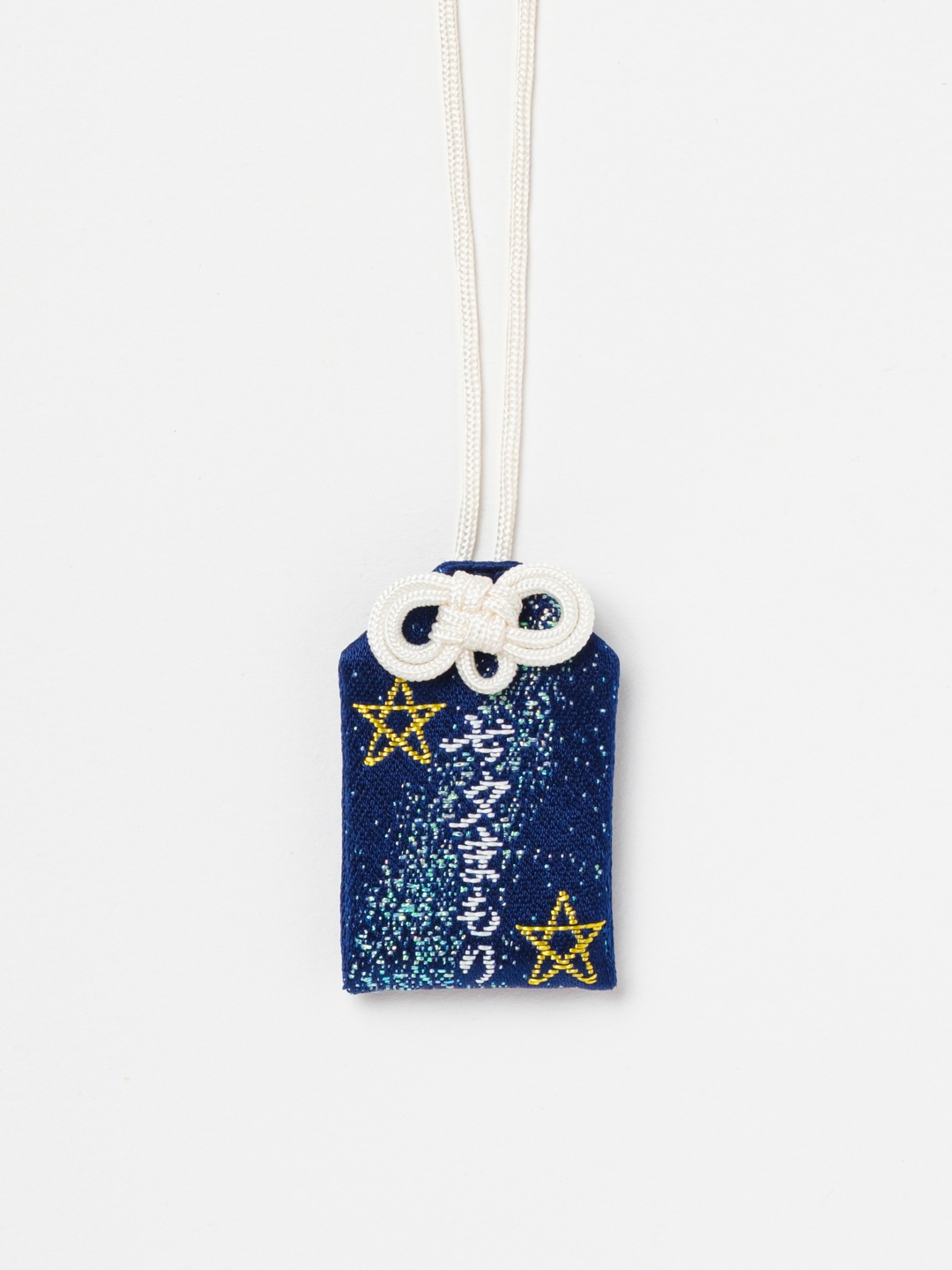 天の川を挟んで晴明神社の社紋である晴明桔梗(五芒星)を織り込んだお守りです。