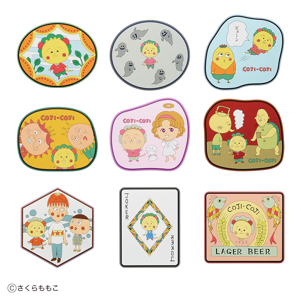 このほか、金色のロゴのアクセントが効いたコミックスのコマ絵風のデザイングラス、緻密で美しい扉絵がデザインされたビジュアルボード、コジコジとゆかいな仲間たちが大集合したカラフルなラバーコースター、コマ絵や原画アートを使用した綿100%のハンドタオルと、いずれも一番くじならではの特別なアイテムを取り揃えました。