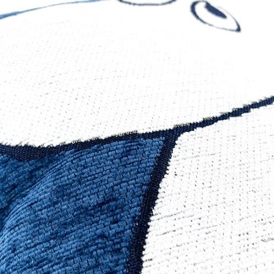 空想にふけっている、ムーミンがデザインされたゴブラン織りのクッションです。深いネイビーの色合いがシックで、高級感がありますよね。