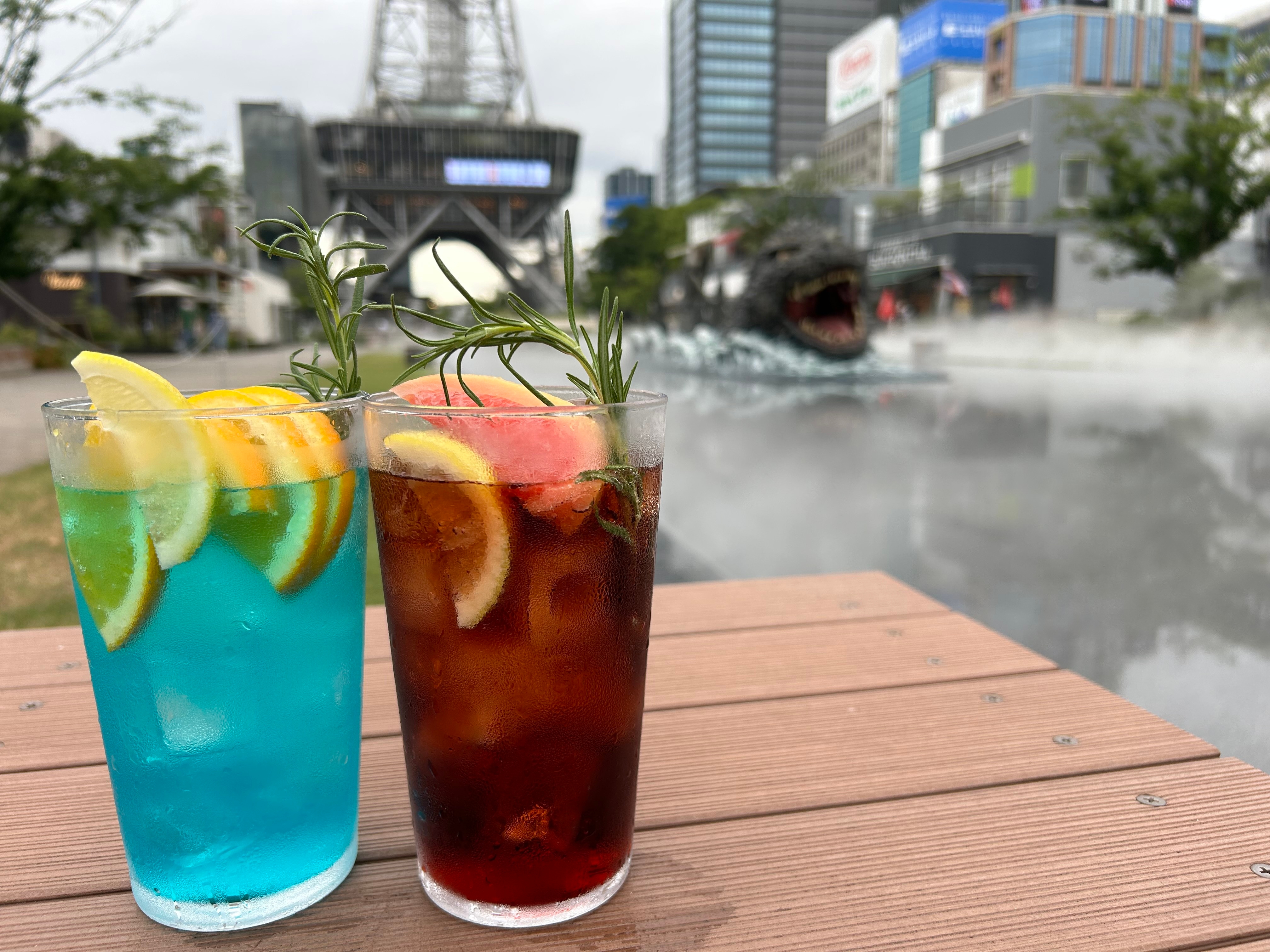 中部電力 MIRAI TOWER 1Fのスポーツバー「HUB GRAMPUS PUB MIRAI TOWER店」では、イベント開催期間中オリジナルドリンクをお楽しみいただけます。暑い夏に、テラス席でオリジナルドリンクを楽しんでいただくのもおすすめです。