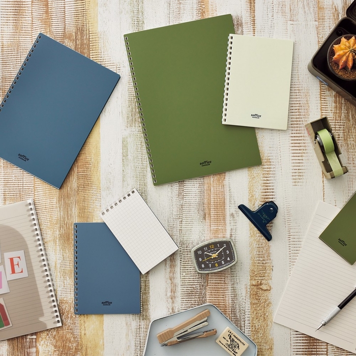 株式会社LIHIT LAB.(本社:大阪市中央区農人橋1-1-22 代表取締役社長:田中宏和)は、2025年10月中旬より、Soffice(ソフィーチェ)シリーズより、新製品(4品番12SKU)を発売いたします。Soffice(ソフィーチェ)シリーズは、やわらかくて薄い独自のリングが特徴です。筆記時に手が当たっても気になりにくく、かさばらないので、持ち運びに便利なノートシリーズです。男性でも手に取りやすい落ち着いた色合いとなっており、また、若年層からビジネスパーソンまで幅広く使える色合いです。既発売品と同じく、今回発売するメモ、A6、A5、セミB5の4サイズとも共通して、オープンポケットが付いており、付せんやシール、カードなどを収納できるようなっております。ちょっとしたメモ書きもオープンポケットに入れて一緒に持ち運べるので、会議やちょっとした外出時に便利です。