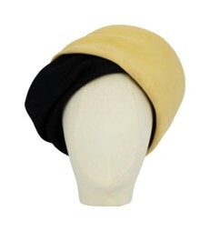 1987年にドイツのベルリンでダイアナ妃が着用して撮影された、王室御用達の帽子デザイナー、フィリップ・サマーヴィルがダイアナ妃のためにデザインした印象的な黄色と黒のフェルトウールのターバン風ハット。