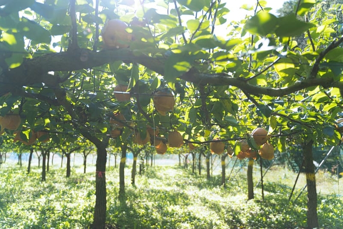 かすみがうら市の旧千代田に位置する果樹園。江戸時代から続く400年以上の歴史を持った農家で、梨以外にも、巨峰や柿、栗などを約7万平方メートルの畑で生産しています。自然農法、減農薬栽培に取り組み、高齢者や体の不自由な方のために、農園内をバリアフリーにするなど、安心・安全な農園づくりにも努めています。