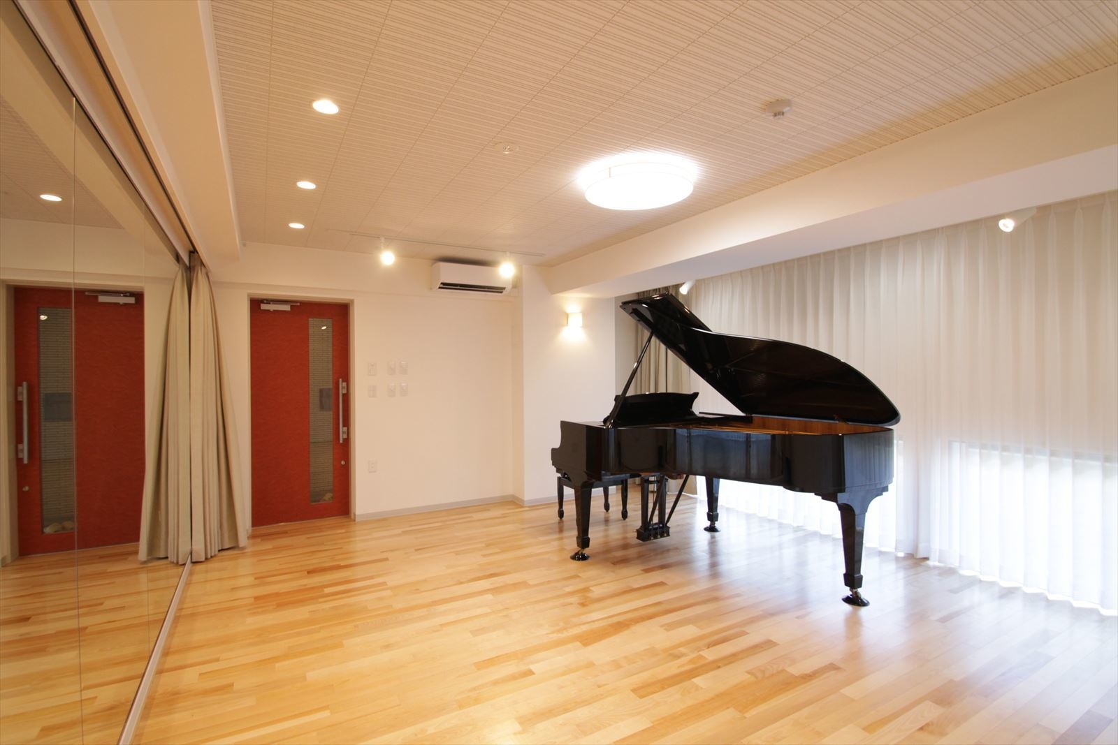 付帯施設として、入居者に向けたレンタル音楽スタジオ(有料)を大・中・小と3室併設。スタインウェイ&サンズ社のグランドピアノなど、海外一流メーカーのピアノが全てのスタジオに設置されており、入居者の音楽活動をより充実したものとしてくれます。