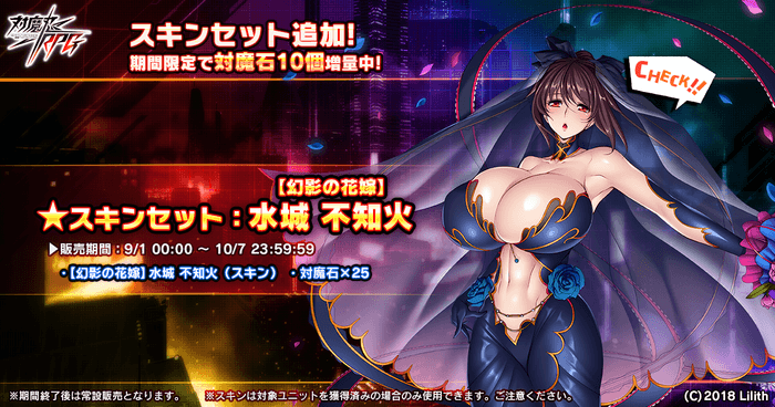 『対魔忍RPG』にて決戦クエスト「決戦“少女時子”」を開催!さらにスキンセット【幻影の花嫁】水城不知火の販売が決定!
