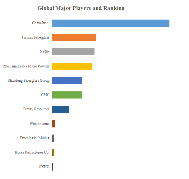 YHResearchのトップ企業研究センターによると、葉ろう石の世界的な主要製造業者には、China Jushi、Taishan Fiberglass、NFGF、ZheJiang LeiNa Micro Powder、Shandong Fiberglass Group、CPIC、Trinity Resources、Wonderstone、Tsuchihashi Mining、Korea Refractories Co.などが含まれている。2023年、世界のトップ5企業は売上の観点から約41.0%の市場シェアを持っていた。